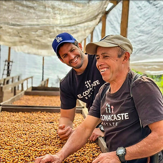 This lot has an average Brix reading of 23%, showcasing its high sugar content. Finca El Conacaste's unique drying process benefits from low humidity and infrequent rain, plays a crucial role in enhancing the flavor. They aim for consistency throughout, ensuring each cherry, grown under a canopy of cypress trees, is harvested at its optimal ripeness. The cherries are then meticulously turned by hand every 30 minutes over a 45-day drying period. Additionally, this particular lot was harvested during the full moon phase, adding a special touch to its cultivation.